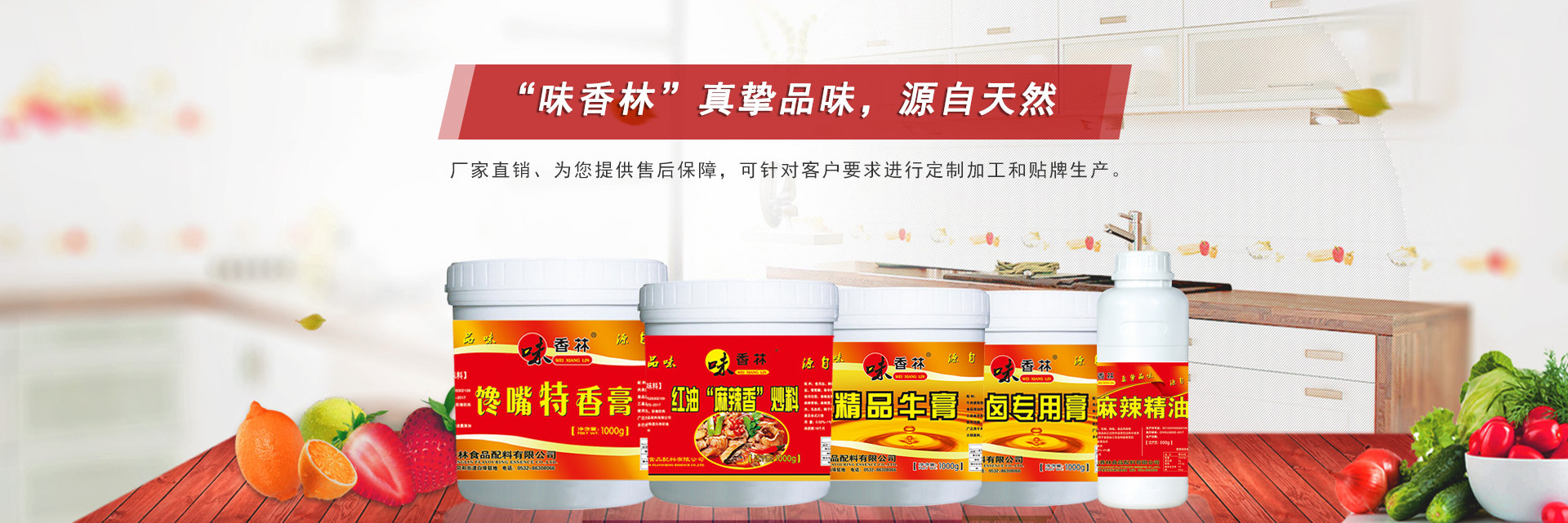 青島味香林復合調味料分為膏狀系列、粉狀系列、油狀系列三大分類,總共一百多種產品,可以根據客戶需求進行定制口味;